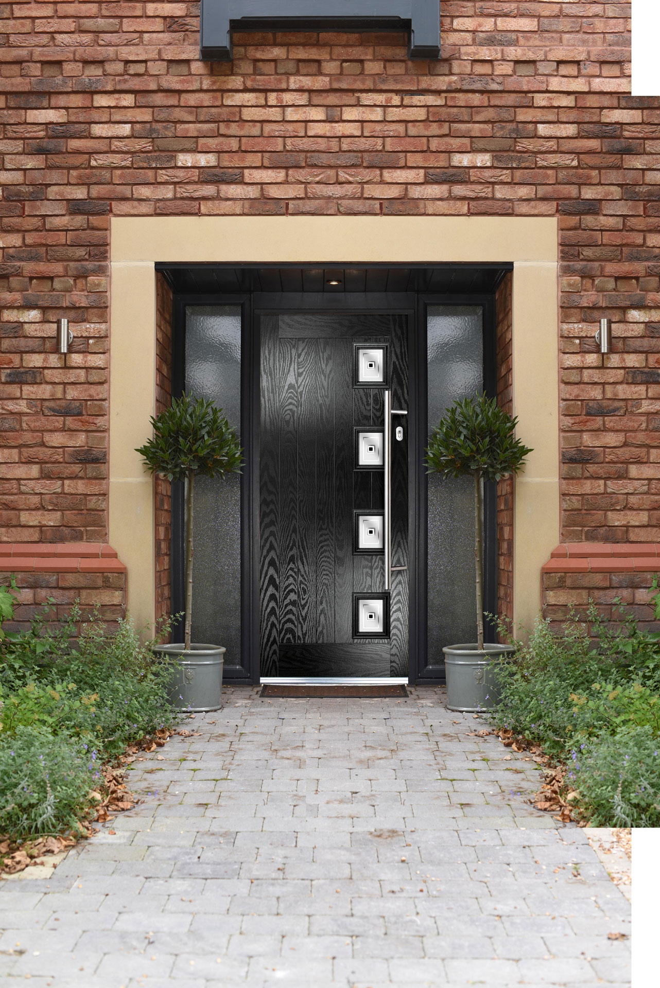 When choosing our composite doors, you can select from various custom colours, foiled frames and textured glass options. With so many possible combinations, we can help you create a unique composite door to complement your chosen style.
